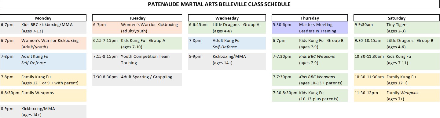 Belleville Martial Arts is an integral part of the Patenaude family, serving the men, women and children of Belleville. Our commitment to all students is to always provide personal, effective and fun training. To learn more about PMA, find other locations, or to contact us, click here to visit PatenaudeMartialArts.ca
